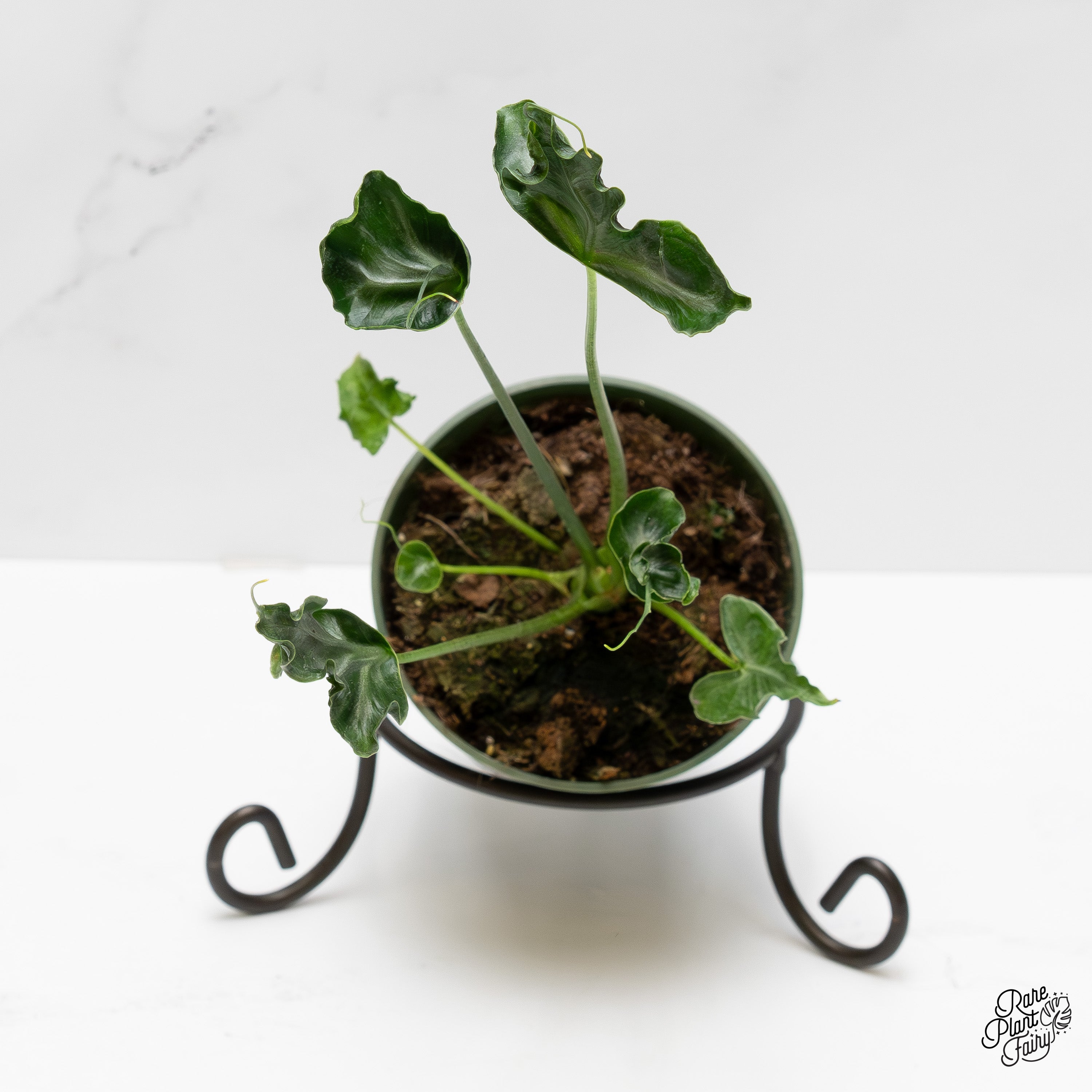 Alocasia ‘Teletubbies’ is a cultivated alocasia selected for its highly distinctive leaf shape and compact growth habit. The foliage is irregular and asymmetrical, with softly folded, rippled margins and subtle lobing that give each leaf a sculptural, animated appearance. Slender petioles elevate the leaves above the base, enhancing the plant’s expressive form and emphasizing the individuality of each leaf as it matures.